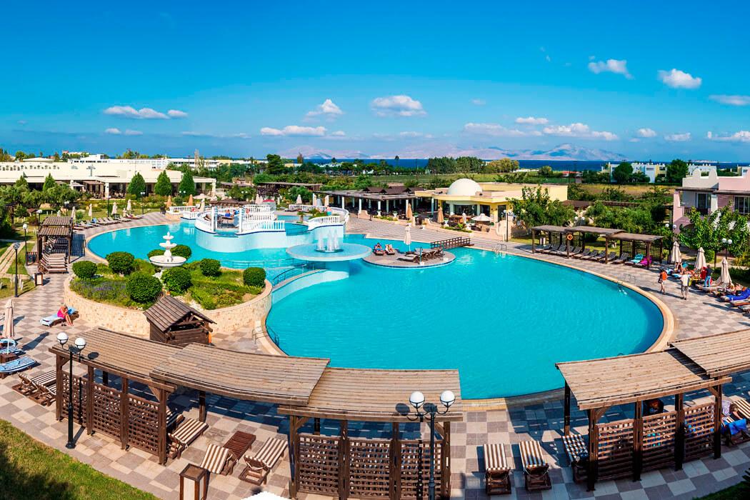 Hlavní budova a několik dvoupatrových bungalovů v zahradě, vstupní hala s recepcí, lobby bar, společenská TV místnost, hlavní restaurace s terasou, minimarket. Venku bazény, bazény pro děti, bar u bazénu, terasa na slunění s lehátky a slunečníky zdarma, osušky za poplatek.