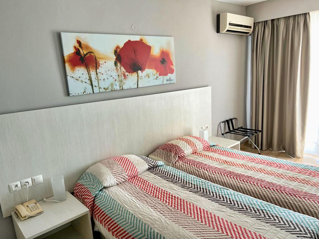 | Standardní pokoje v hlavní budově s balkonem nebo terasou a sociálním zařízením (sprcha, WC, fén) jsou klimatizovány (klimatizace zdarma) a vybaveny TV/SAT, telefonem, trezorem (zdarma) a chladničkou. K dispozici je také kávový a čajový set. Možnost jedné přistýlky (maximální obsazenost tři dospělí). Za příplatek pokoje s výhledem na moře - možnost dvou přistýlek - patrová postel (maximální obsazenost tři dospělí a jedno dítě). |