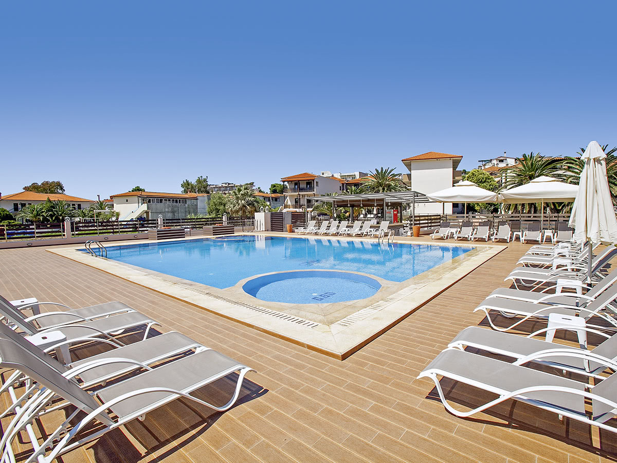 Hotel se nachází v blízkosti pláže, nedaleko centra letoviska s tavernami, bary a supermarkety, cca 200 m od zastávky autobusu, dětského hřiště a autopůjčovny, letiště Thessaloniki je vzdáleno cca 80 km.