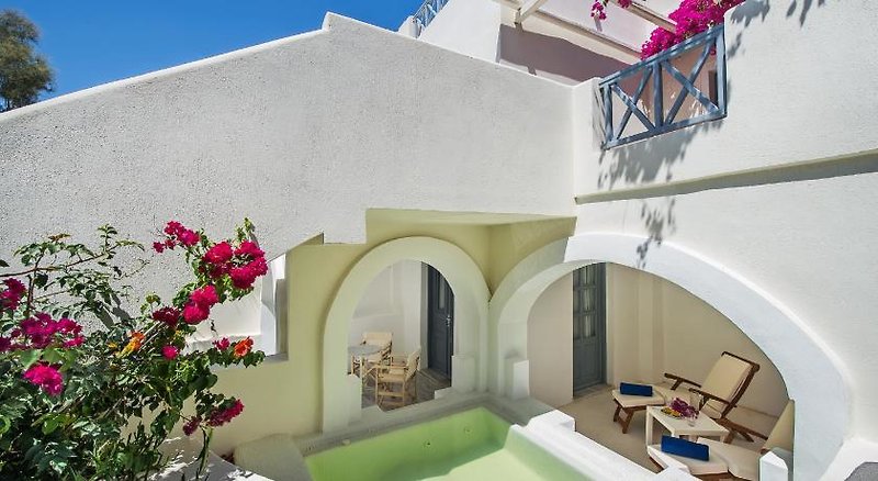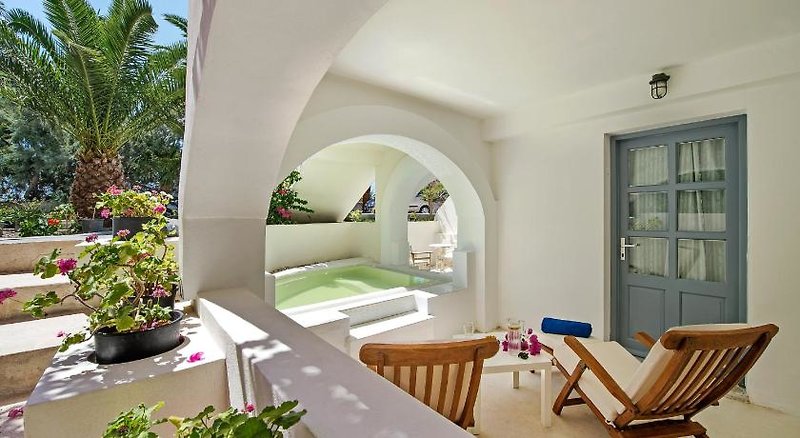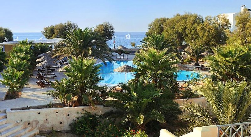 Hotel se nachází přímo u pláže, cca 650 m od nejbližšího supermarketu a taveren. Letiště JTR je vzdáleno přibližně 13 km.