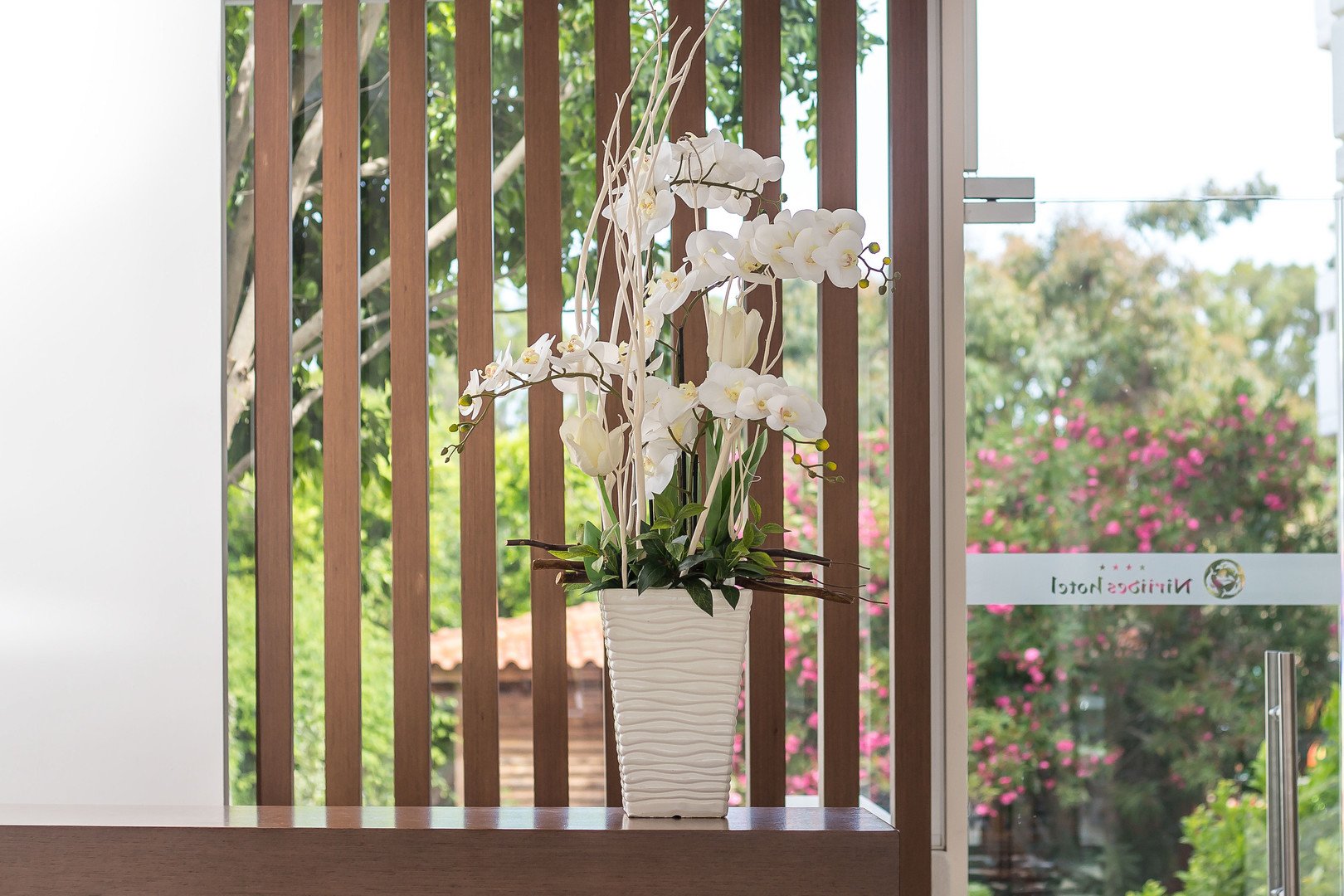 Hotelový komplex 3 třípodlažních budov je umístěn v menší zahradě.