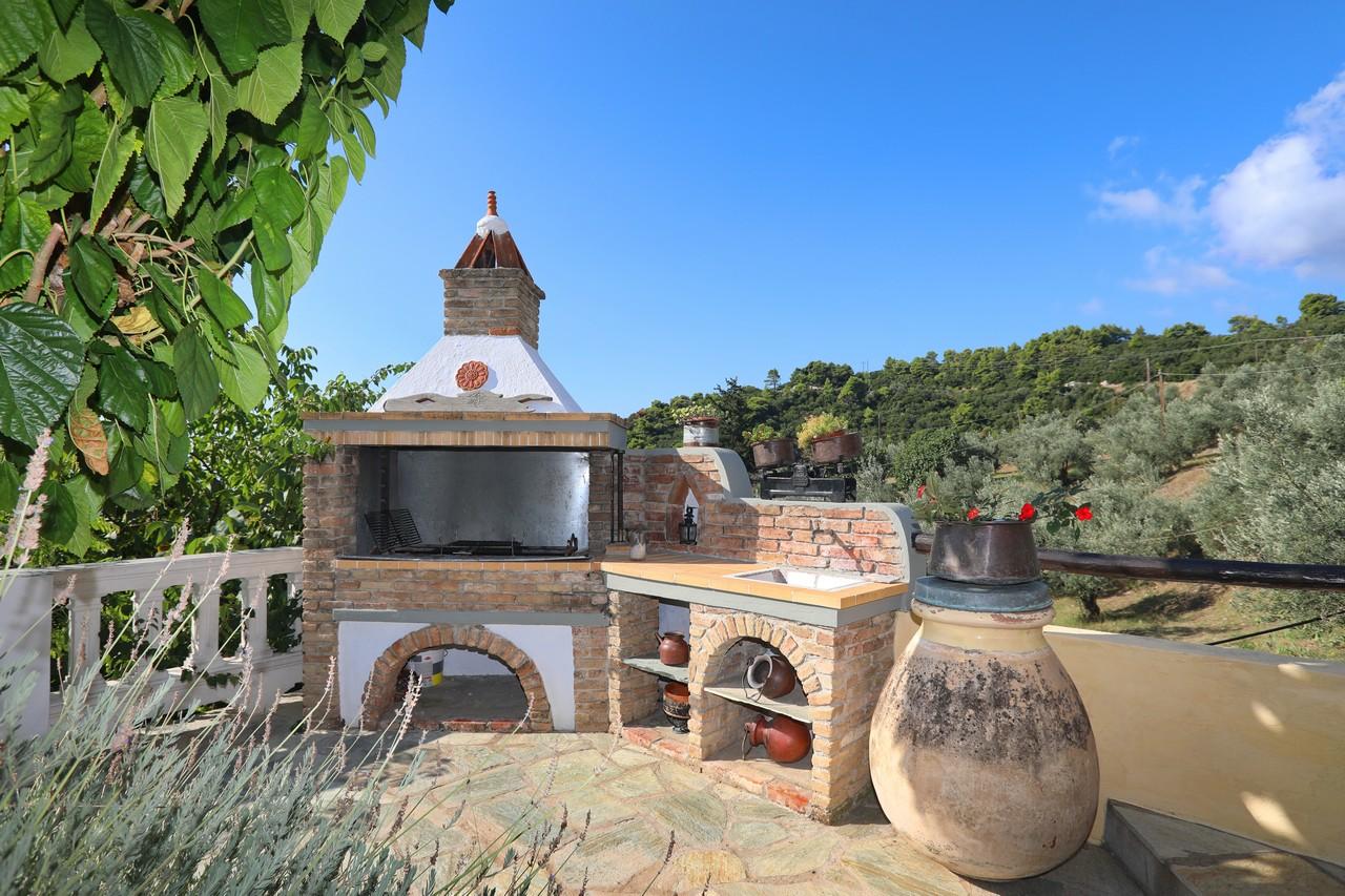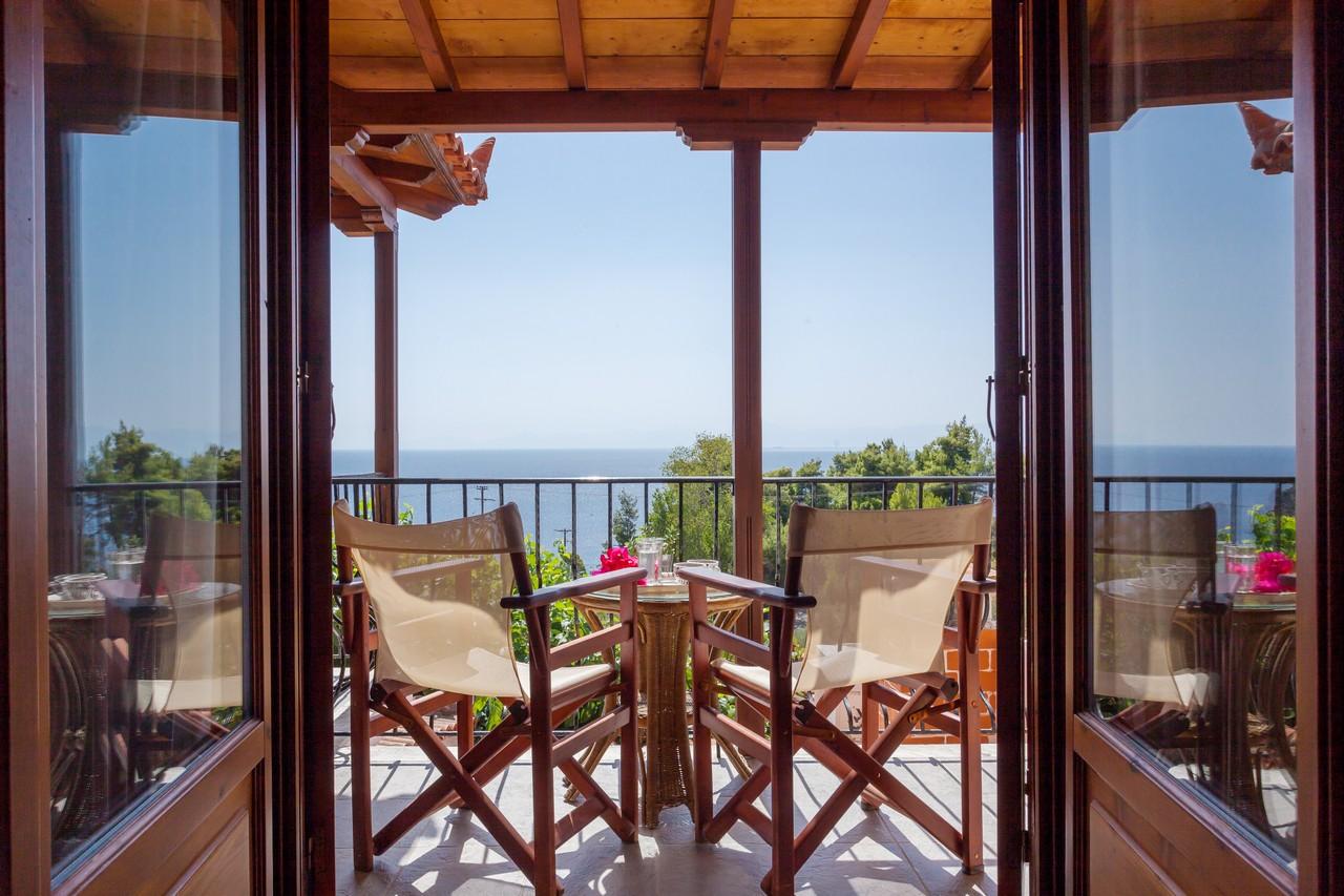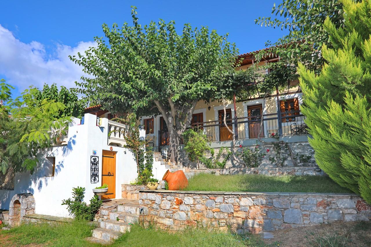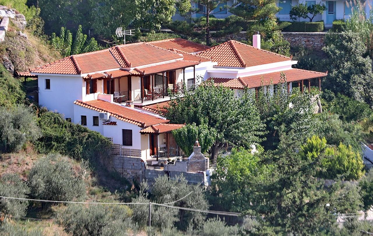 | Rodinný penzion v tradičním řeckém stylu je posazen v mírném svahu, což jeho hostům skýtá skutečně nádherné výhledy jak na moře, tak i na široké okolí. Okolí je porostlé hezkou zelení, která skýtá dosatek stínu. Celkově dům působí velice příjemně, je dobře udržovaný rodinou majitelů. Parování u penzionu je závislé na dostupnosti. |