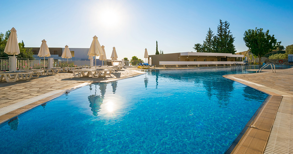 - All Inclusive: snídaně, oběd a večeře formou bufetu, zmrzlina a snack během dne, možnost povečeřet v řecké taverně Ouzaki Anemos (rezervace), neomezené množství místních vybraných alko a nealko nápojů ve vybraných barech a restauracích dle jejich otevírací doby (10.00–24.00)
