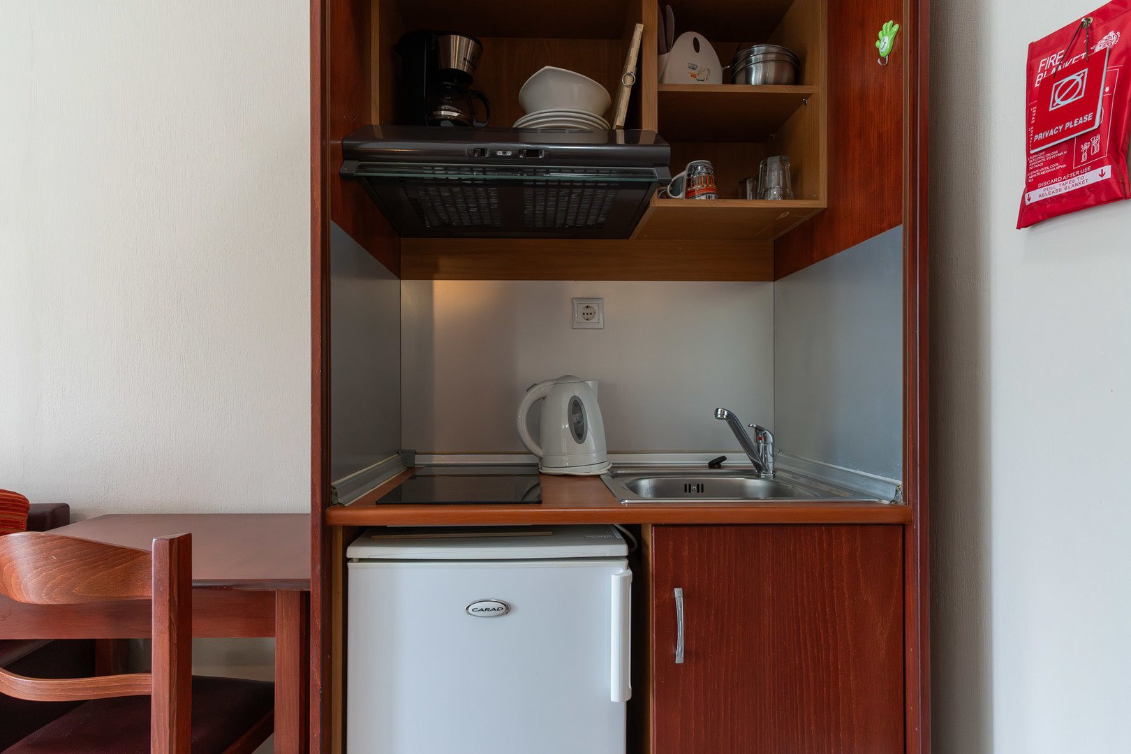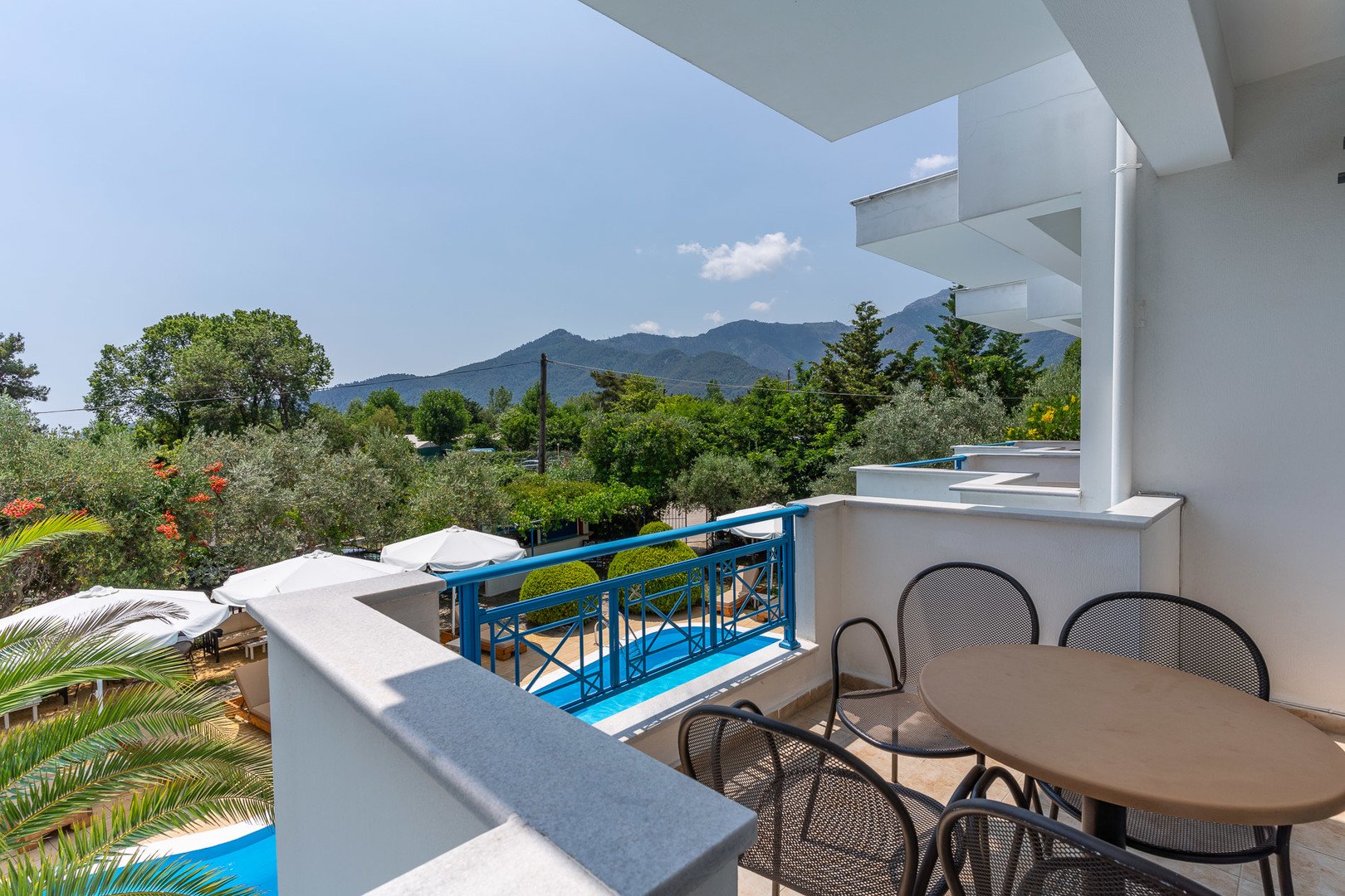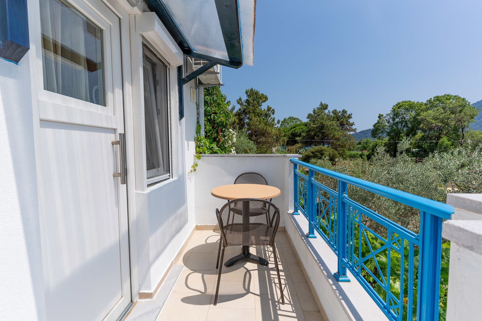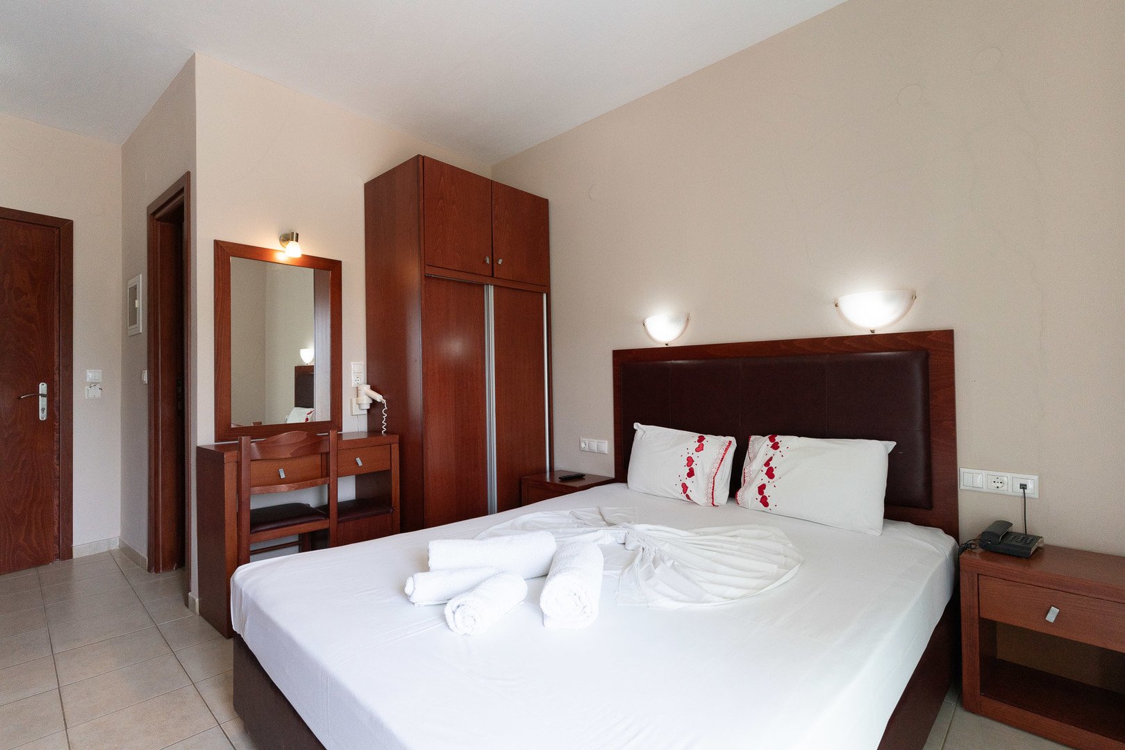 Dvoulůžkové pokoje studiového typu s možností jedné přistýlky jsou vybaveny vlastním sociálním zařízením (WC, sprcha, fén), klimatizace, WiFi, chladnička, SAT/TV, balkon nebo terasa, kuchyňské vybavení.