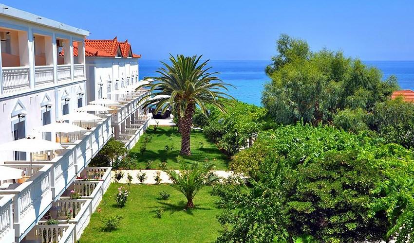 | Hotel Belussi Beach 4* se nachází v klidné části letoviska Kypseli v pěkné udržované zahradě a se skvělou polohou přímo u soukromé užší písečné pláže s lehátky a slunečníky zdarma. K vybavení hotelu patří vstupní hala s recepcí s Wi-Fi připojením zdarma v celém areálu hotelu, minimarket, směnárna, TV místnost, internetový kout, restaurace s výhledem na bazén a moře (možnost obědů i večeří na místě), bazén se sluneční terasou s lehátky a slunečníky zdarma a pool bar s osvěžujícími nápoji, koktejly, kávou a zmrzlinou. Pokud zatoužíte po větším ruchu, 5 km od hotelu objevíte živé centrum letoviska Tsilivi s mnoha obchody se suvenýry, minimarkety, tavernami a bary, autobusová zastávka je od hotelu vzdálená 200 m. Přátelská atmosféra hotelu a zejména blízkost moře zaručují příjemně strávenou odpočinkovou dovolenou. |