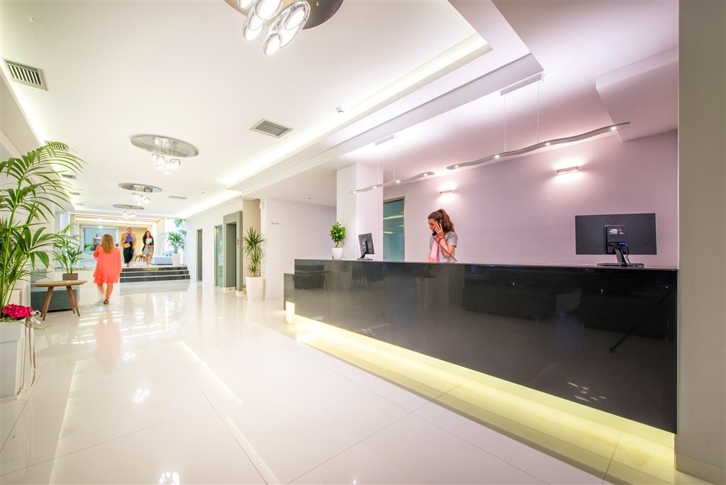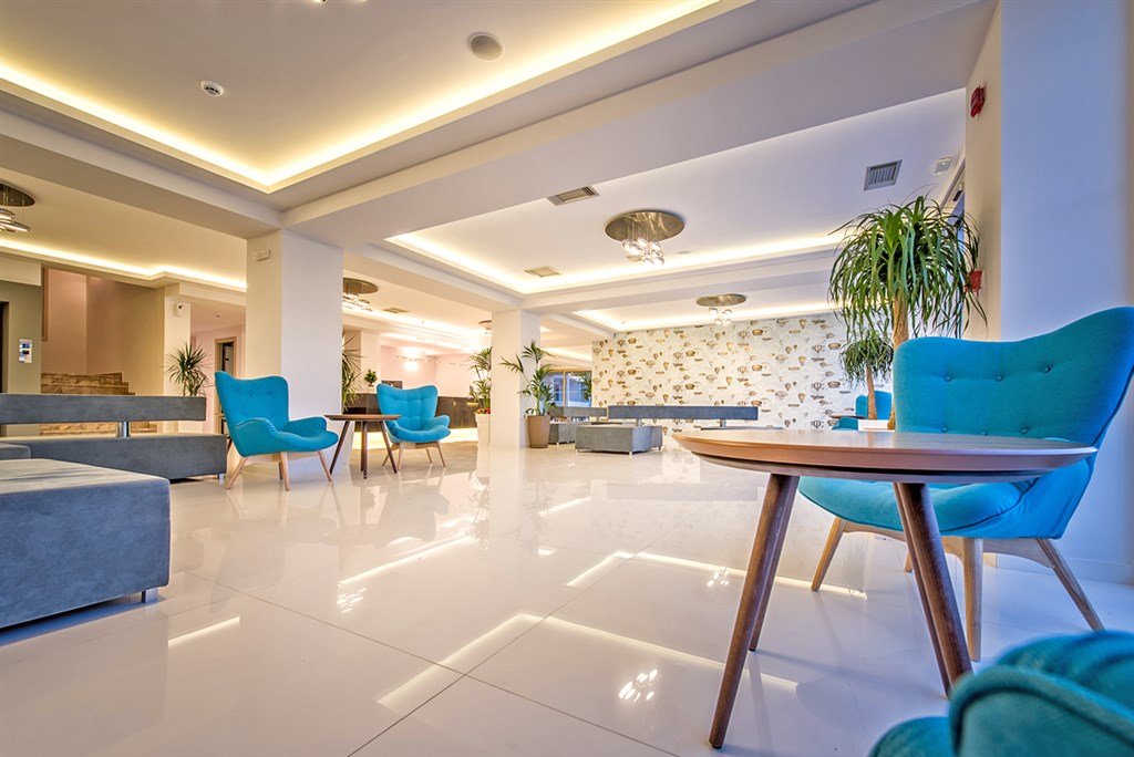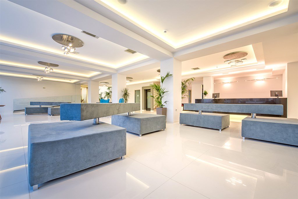 Vstupní hala, recepce, výtahy, hlavní restaurace, 2 bary u bazénu, lobby bar, konferenční místnost, WiFi ve společných prostorách hotelu zdarma, terasa s bazénem, brouzdaliště pro děti; lehátka, slunečníky a osušky (vratný depozit 5 eur) u bazénu zdarma.
