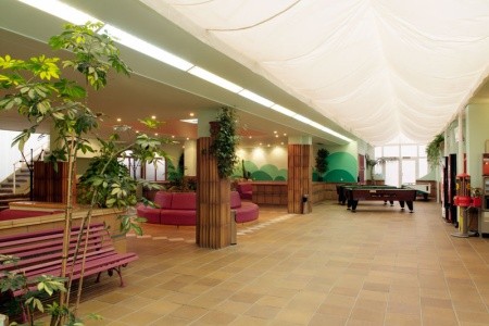 | Menší rodinný hotel nabízí vstupní halu s recepcí, výtah, bufetovou