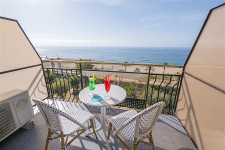 standardní pokoj, navíc balkon s posezením a výhledem na moře.