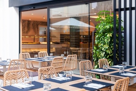 restauraci, cafeterii-bar, menší sluneční terasa s bazénem a s