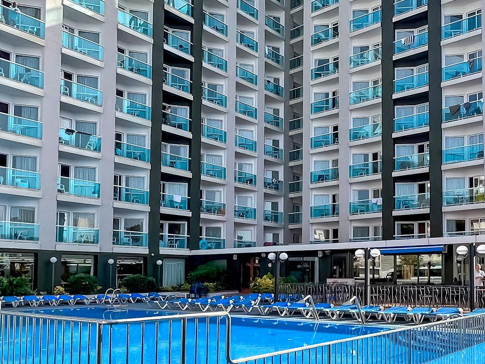 Přibližně 100 m od hotelu se nachází písečná a oblázková pláž, která je od hotelu oddělena promenádou (s povoleným provozem) a železnicí spojující pobřeží s Barcelonou. Lehátka a slunečníky na pláži za poplatek (cca 10Eur/osoba). . |