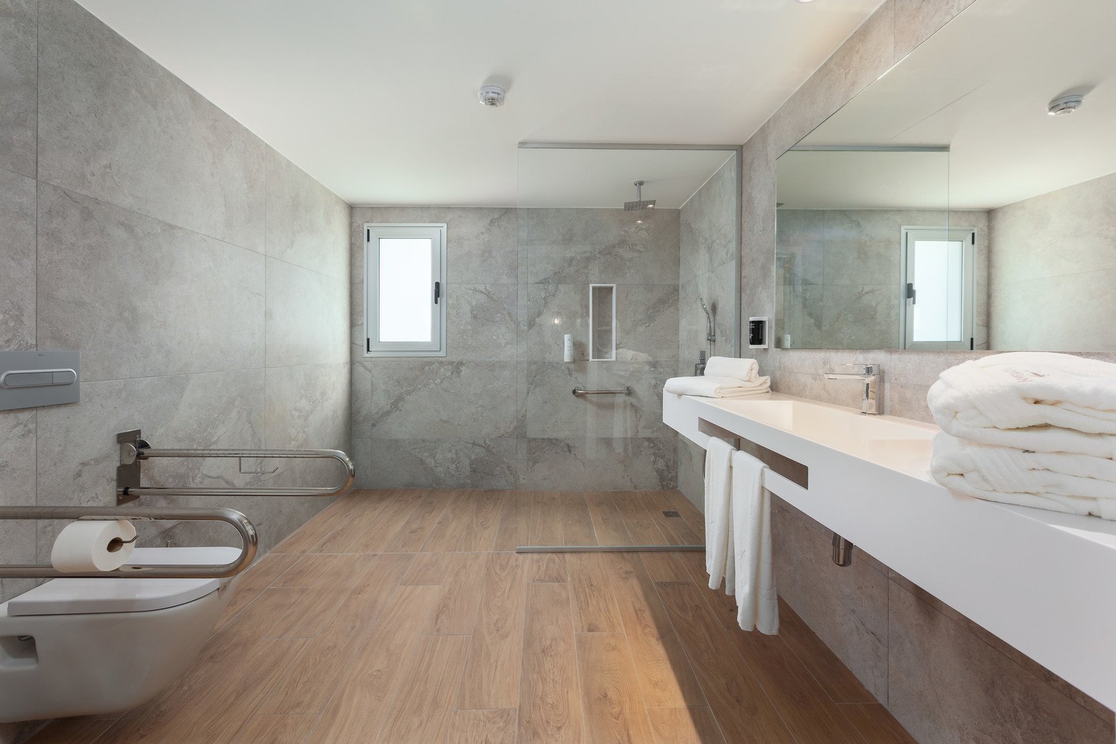 Junior suite má cca 33 m², je vybaven manželskou postelí, koupelnou se sprchou nebo vanou, WC, fénem, rozkládací pohovkou v obývací části, TV, terasou s posezením.