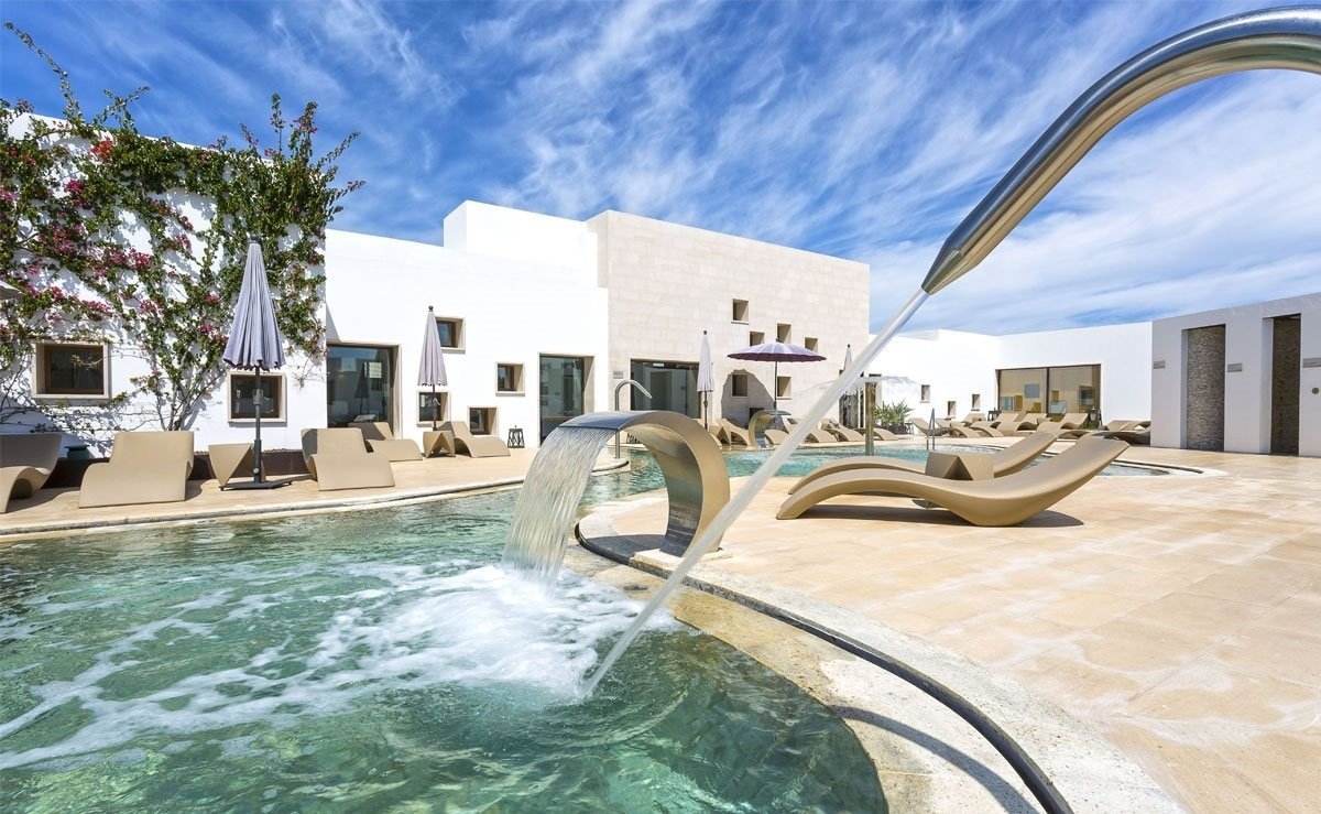 Moderní hotel je postaven na jižním cípu ostrova, přímo u pláže, autobusová zastávka se nachází před hotelem, půjčovna aut přibližně 100 m, turistické centrum je vzdáleno cca 700 m, supermarket cca 2 km, letiště cca 4 km, centrum města Ibiza cca 5 km.