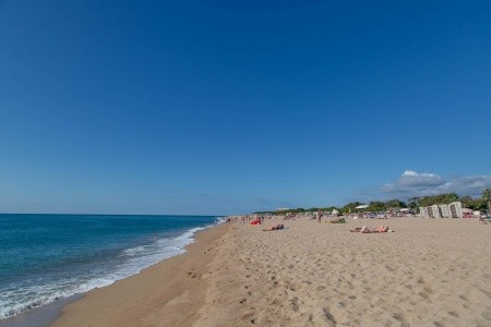 lehátka a slunečníky za poplatek, plážový bar za poplatek. |