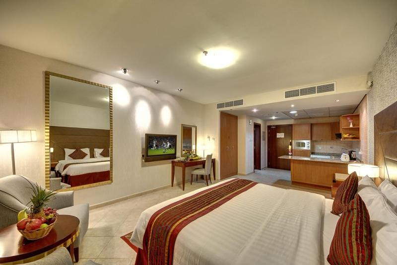 | AL MANAR GRAND HOTEL APARTMENTS 4****: Hotel je umístěn v centru Bur v Dubaji. Nedaleko hotelu se nachází banka ADCB, stanice metra Burjuman, obchodní centrum Road, jídelní a nákupní čtvrt Bur Dubai Creek, nákupní centrum Burjuman, kina, trh Gold Souk a muzeum. Blízko hotelu leží World Trade Center, Exhibition Center a Shaikh Zayed Road. Al Manar Grand Hotel Apartment disponuje 173 nově zrekonstruovanými pokoji ve studiích a apartmánech s 1 ložnicí a manželskou postelí King nebo oddělenými postelemi. Všechny pokoje jsou vybaveny televizí s mezinárodními programy, kuchyní, mrazákem, pračkou, příslušenstvím pro přípravu kávy i čaje, mikrovlnnou troubou, bezpečnostní schránkou, DVD přehrávačem a telefonem. Dále zde naleznete restaurace Multicuisine, která nabízí pokojovou službu, snídaně, obědy a večeře. Mezi její speciality patří indické kari, kebab a jídla biryanis i tandoori. Hotel disponuje bazénem, finskou saunou, saunou a vybavenou posilovnou. |