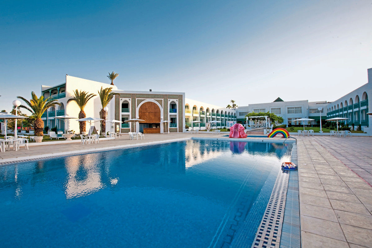 Menší hotel postavený v klasické architektuře , recepce, směnárna, restaurace, bar a maurská kavárna s TV/sat. Venku bazén s terasou na slunění s lehátky a slunečníky zdarma, snack bar u bazénu.