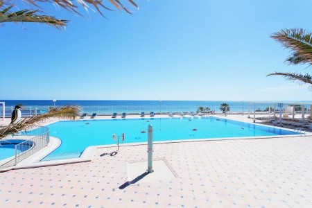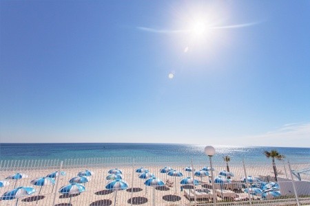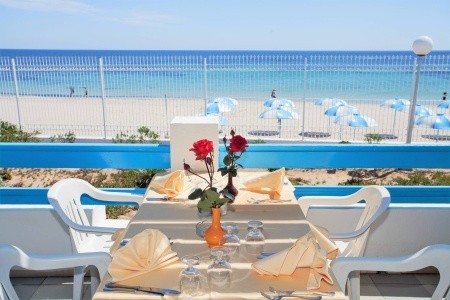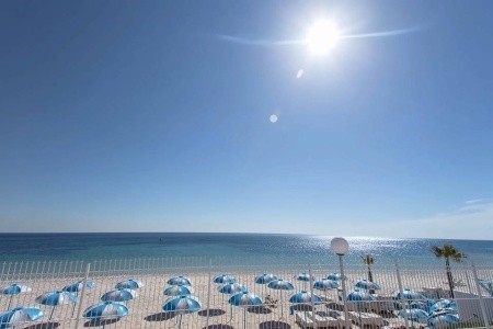 Dlouhá písečná pláž s pozvolným vstupem do moře přímo u hotelu. Lehátka a slunečníky zdarma. Bar na pláži.