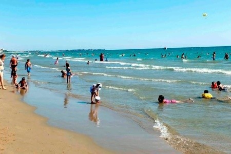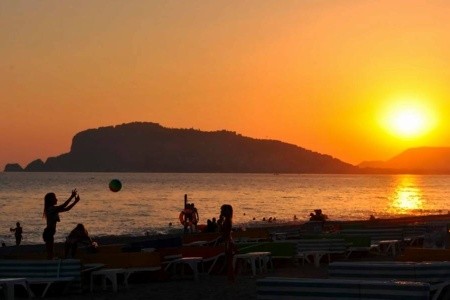 oblázková pláž se nachází 150 metrů od hotelu, přes silnici, dostupná podchodem délka pláže je 100 metrů na pláž jezdí kyvadlová doprava, která je zdarma bar na pláži lehátka, slunečníky, matrace, donáška ručníků - zdarma (výměna ručníků - za poplatek) vstup do moře - skály |