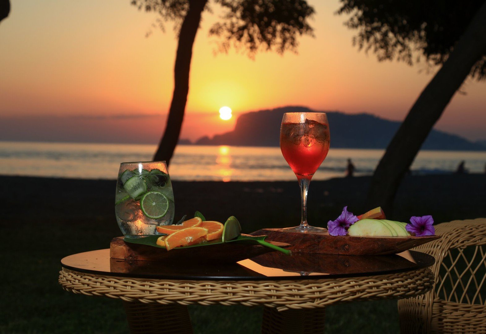 Hotelová písčito-oblázková pláž. Přibližně 450 m dlouhá s pozvolným vstupem do moře, přímo u hotelu. Slunečníky, lehátka a osušky zdarma. V rámci All inclusive plážový bar.
