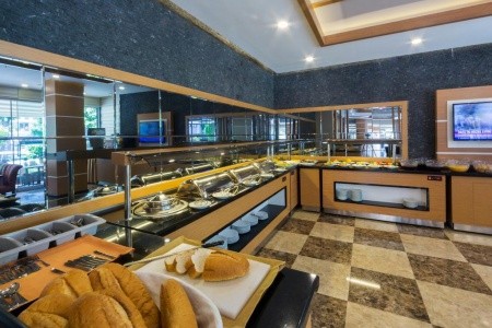 All Inclusive: snídaně (07:00-10:00), oběd (12:30-14:00), večeře (19:00-21:00). Nealkoholické a místní alkoholické nápoje jsou k dispozici od 10:00-23:00. All Inclusive nezahrnuje: dovážené nápoje, čerstvě vymačkané ovocné šťávy, tureckou kávu a zmrzlinu. |