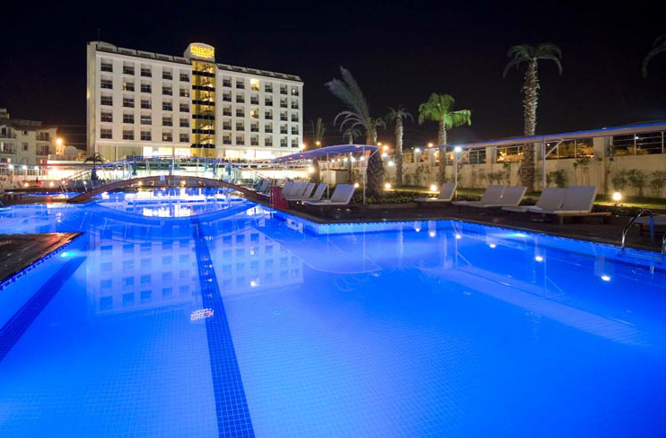 | Hotel se nachází na okraji letoviska Side ve vzdálenosti 400 m od krásné písečné pláže s lehátky a slunečníky zdarma a s nabídkou vodních sportů (za poplatek). K dopravě na pláž lze využít zdarma hotelový bus. Hostům je k dispozici vstupní hala s recepcí, Wi-Fi zdarma, restaurace, bar, bar u bazénu, bar na pláži (součást all inclusive), 2 bazény s lehátky a slunečníky zdarma, dětský bazén se skluzavkami, dětské hřiště, fitness, turecké lázně a sauna. Profesionální animační team nabízí pestré zábavní programy a miniklub (4−12 let) pro děti. Nedaleko hotelu naleznete nákupní možnosti, restaurace i bary. Historické centrum Side je vzdálené 5 km (autobusová zastávka v blízkosti hotelu). Kvalitní hotel s výbornými službami je zárukou spokojené dovolené. |