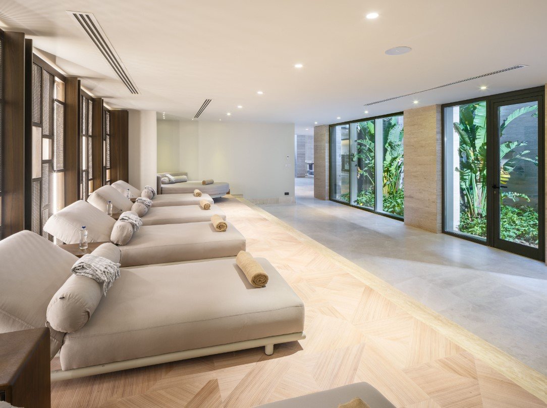 koupelna, toaleta, vysoušeč vlasů, žehlička na vlasy, telefon, TV/SAT, centrální klimatizace, minibar, trezor (zdarma), set na přípravu kávy a čaje, kávovar na kapsle, žehlička, žehlicí prkno, župan, pantofle, terasa s lehátky a bazénem