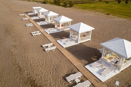 • přímo na pláži • veřejná (se soukromou částí hotelu) • písčito-štěrková • doporučená obuv do vody • lehátka v ceně • slunečníky v ceně • plážové osušky v ceně |