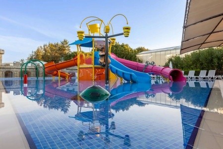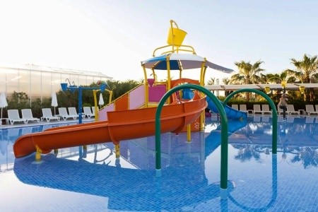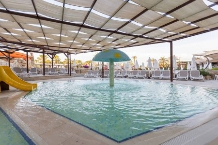 Jedná se o velmi oblíbený a vyhledávaný hotel s komorní rodinnou atmosférou. Nachází se stranou od ruchu města, přímo na dlouhé písčito-oblázkové pláži. Díky příznivým přírodním podmínkám se pláž stala oblíbeným hnízdištěm želv karetek. Tento hotel je ideální pro rodinnou dovolenou ve Středomoří díky mnoha aktivitám, které jsou připraveny pro nejmenší. Děti se mohou mimo jiné těšit na samostatný bazén, dětské hřiště a animaci v miniklubech. K dispozici je také bazénový komplex se skluzavkami zasazený do zelené zahrady plné palem a barevných květin. |