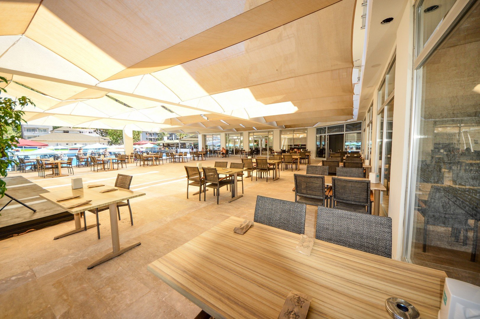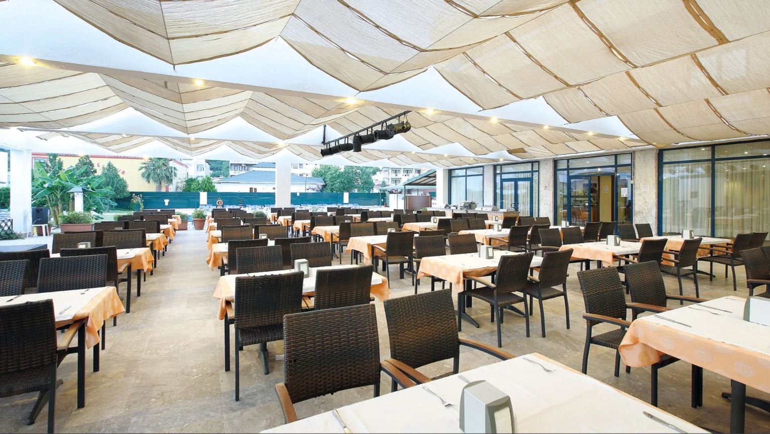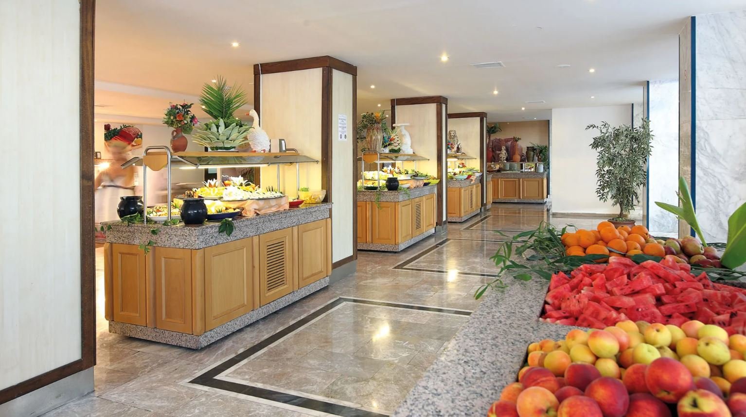All inclusive (do 23:00) snídaně (7:30-9:30), pozdní snídaně (9:30-10:00), oběd (12:30- 14:00), večeře formou bufetu (19:30-21:00) v restauraci. Občerstvení ve vyhrazeném baru (14:00-16:00), nealkoholické nápoje a místní alkoholické nápoje v uvedených barech (10:00-23:00), je vyžadováno nošení pásek all inclusive.