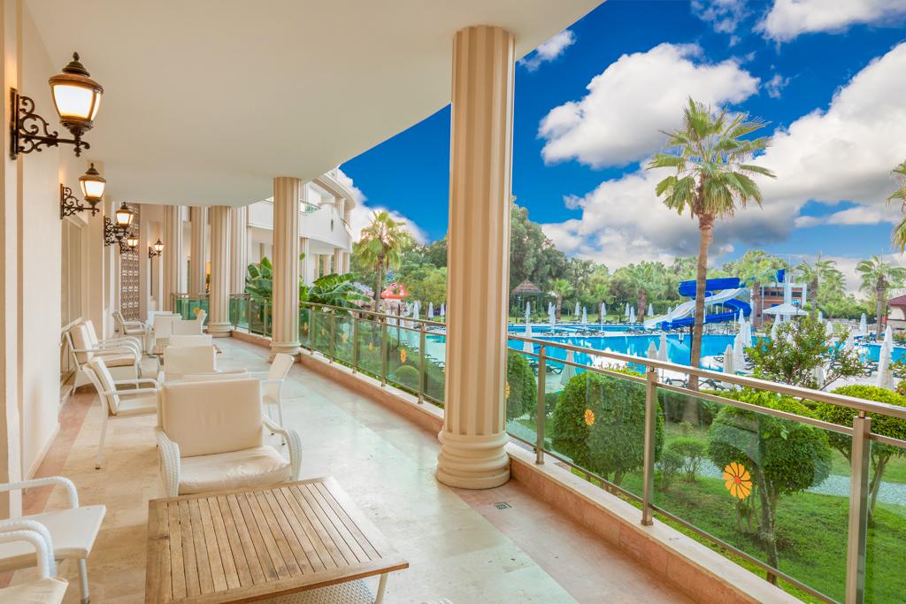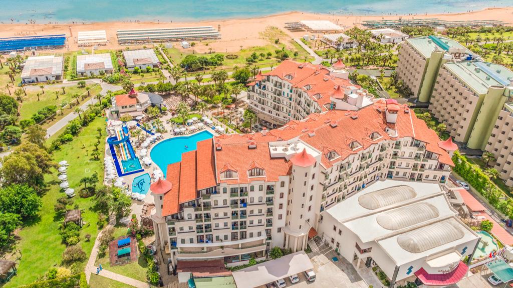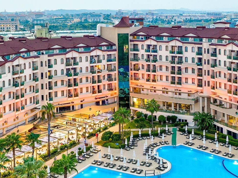 | Nádherný hotelový resort se skládá z hlavní budovy a několika dvoupodlažních vilek ležících v krásné zahradě plné palem, oleandrů a květin. Přidáme-li komfortní ubytování, bohaté služby all inclusive, bazény, skluzavky a krásnou pláž přímo u hotelu, stává se tento hotel opět jedním ze žhavých tipů na absolutní hit léta. Ani letos nebudou chybět naši čeští animátoři, kteří Vás spolu s maskoty Karcoolkou a Lexou nadchnou svým nabitým programem plným zábavy, sportovních i nesportovních aktivit, her, soutěží a turnajů pro děti i dospělé. To vše jen několik kilometrů od antických památek a bohatých možností nákupů a zábavy v centru městečka Side. |