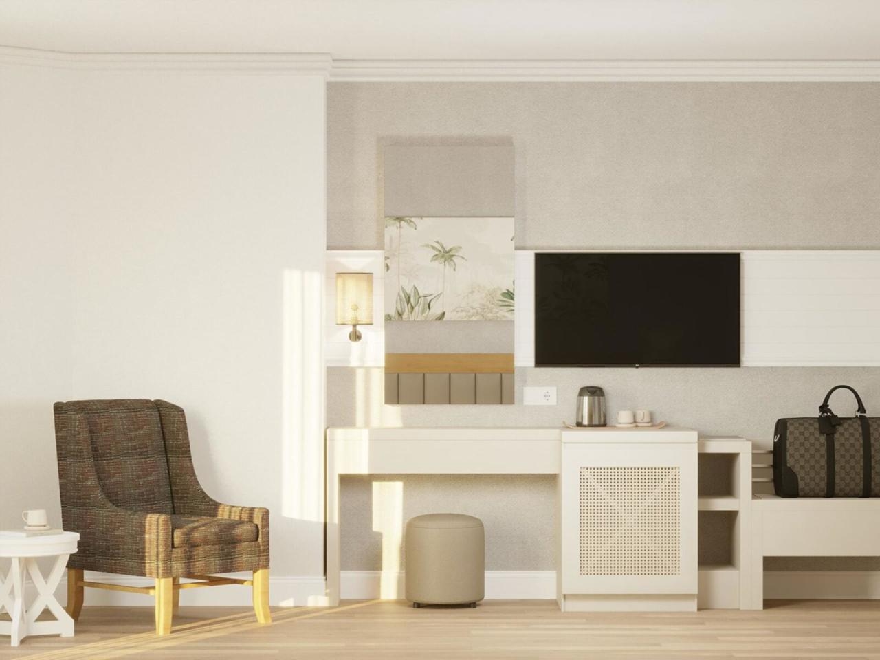 • v hlavní budově • poslední částečná rekonstrukce v roce 2022 • obývací pokoj s ložnicí • klimatizace: v ceně, centrálně řízená • trezor: v ceně • stropní ventilátor • rychlovarná konvice • minibar: v ceně, nealkoholické nápoje: v ceně, v ceně all inclusive, voda: v ceně, zahrnuto v all inclusive, doplňování minibaru: denně • telefon • Wi-Fi: v ceně, zahrnuto v all inclusive • satelitní TV • pokojová služba: 24 hodin denně, za poplatek • sprcha • WC • vysoušeč vlasů |