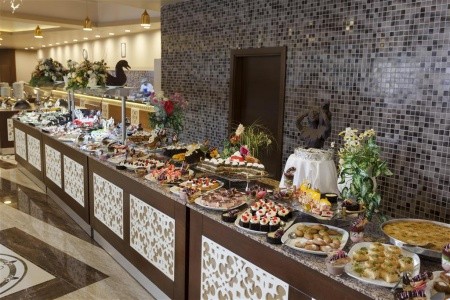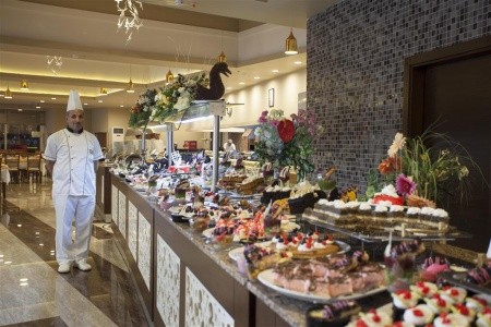 Ultra all inclusive zahrnuje snídaně (7:30-10:00), pozdní snídaně, obědy (12:30-14:00), večeře (19:00-21:00) formou bufetu v hlavní restauraci, Snack Bar (12:00 - 16:30), další občerstvení během dne, nealkoholické a alkoholické nápoje místní výroby v časech a místech určených hotelem. 1x za pobyt možnost večeře v restauraci à la carte - nutná předchozí rezervace.