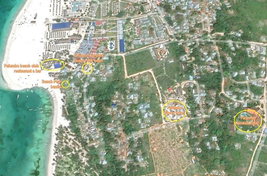 Hotel Palumbo Waves se nachází v severozápadní části ostrova Zanzibar v oblasti Kendwa. Resort je položen v kopci nad pláží, pláž je vzdálena přibližně 300 m od hotelu, hotelový transfer na pláž je zajištěn zdarma. Mezinárodní letiště na Zanzibaru je vzdálené přibližně 67 km, hlavní město Stone Town cca 60 km.